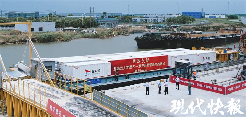 日前,隨著一聲汽笛聲響,鹽城港“大港集003”集裝箱船舶緩緩駛離鹽城港內河集裝箱碼頭,執行鹽城港大豐港區至淮安港內河集裝箱班輪航線首航任務。現代快報記者了解到,當天鹽城港航運集團與淮安港戰略合作協議正式簽訂,這拉開了鹽城港與淮河生態經濟帶沿線又一重要港口的合作序幕,標志著鹽城港深度融入淮河生態經濟帶再顯新作為。