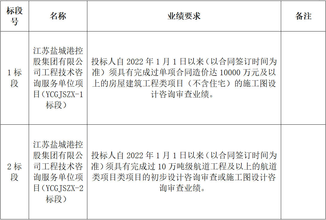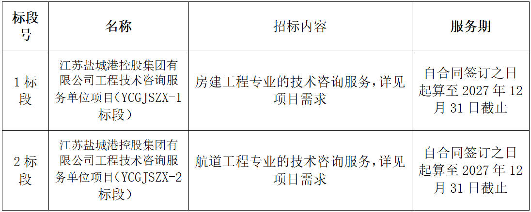 1、項目名稱:江蘇鹽城港控股集團有限公司工程技術(shù)咨詢服務(wù)單位項目