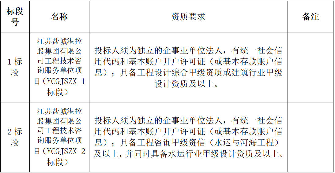 江蘇鹽城港控股集團有限公司工程技術(shù)咨詢服務(wù)單位招標公告
