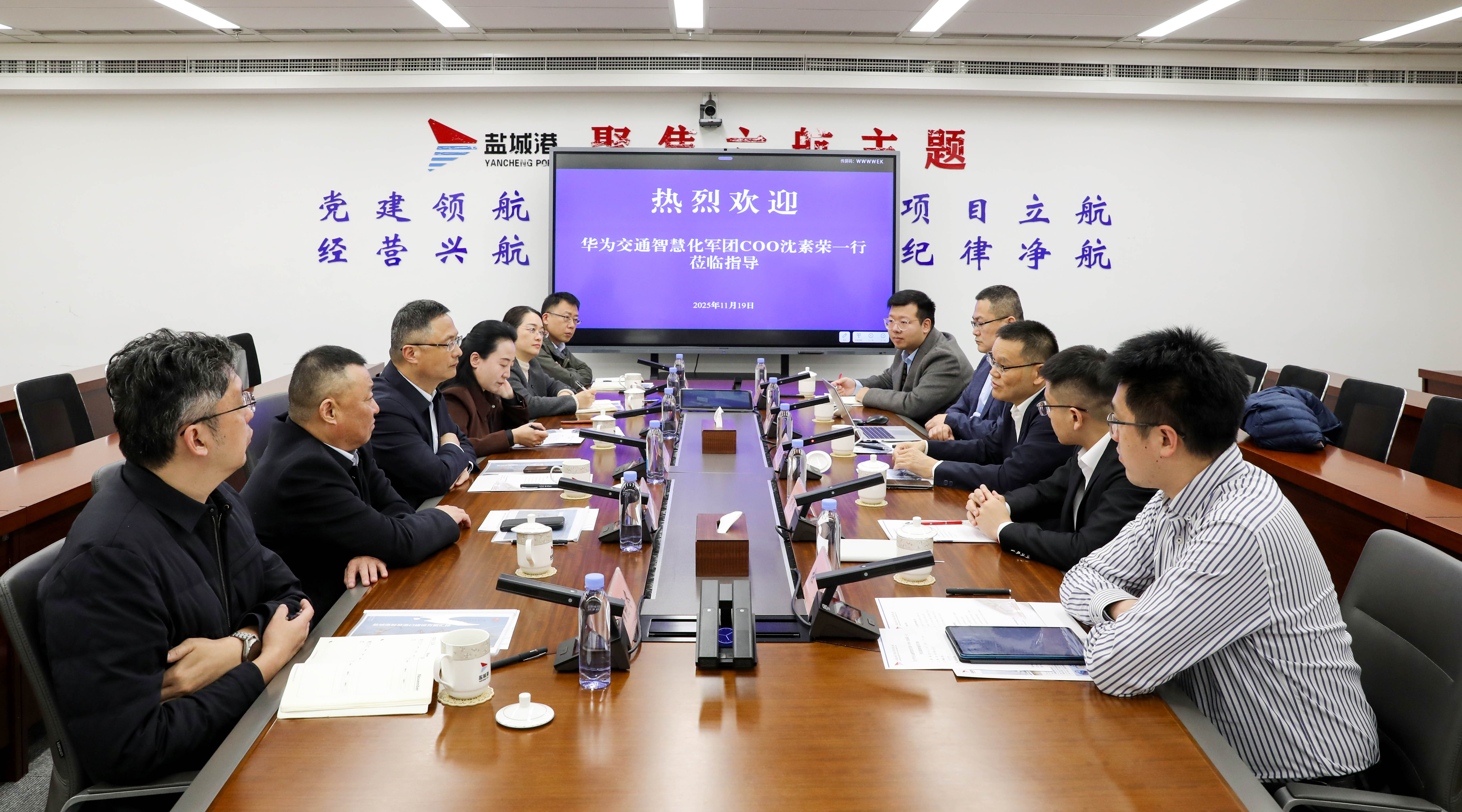 11月19日,集團(tuán)黨委書記、董事長(zhǎng)陸帥會(huì)見(jiàn)華為交通智慧化軍團(tuán)COO沈素榮一行,雙方就深化業(yè)務(wù)合作進(jìn)行交流。集團(tuán)總經(jīng)理袁欣,集團(tuán)黨委副書記周旭東,華為鹽城業(yè)務(wù)部總經(jīng)理劉家赫,華為及鹽城港相關(guān)單位、部門負(fù)責(zé)人等參加。