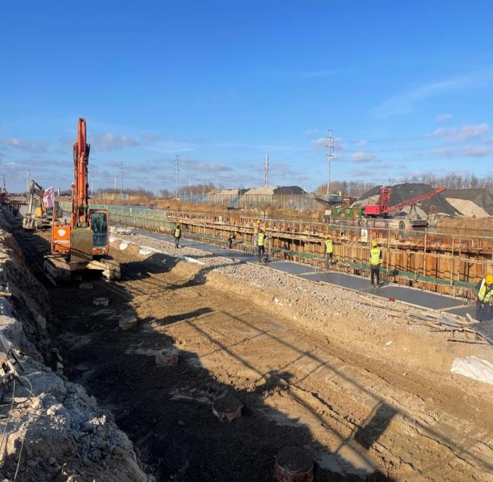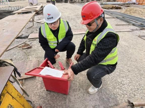 大豐港區內河北作業區項目現場,緊張有序的奮進景象同樣令人動容。當前項目正處于技術復雜、工序銜接緊密的攻堅階段,項目部提前部署、科學統籌,元旦期間保持 “管理力度不減、施工標準不降”,組織多支專業攻堅班組輪班作業。施工現場,工人們手持扎鉤穿梭于鋼筋網格間,將冰冷的鋼筋編織成堅實的 “安全長城”,全力推進地上防洪墻施工,以日計劃保周進度、以周調度促月完成,筑牢港區防汛第一道防線。“雖然不能回家過節有點遺憾,但看著工程一天一個樣,心里特別踏實。” 一位正在校核測量數據的技術員道出了眾多建設者的心聲。他們各司其職、默契配合,在機械運轉與焊花閃爍中沖刺關鍵節點,用扎實的工程進展為港區發展注入蓬勃活力。