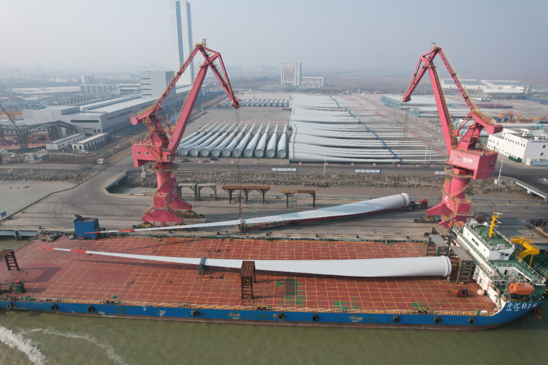 射陽港區全力以赴、抓緊抓實四期碼頭、綜合倉儲等多個項目建設,不斷提高碼頭能級,滿足超大風電設備裝卸需求,為夯實“全球領先的風電產業特色港”發展打下堅實基礎。
