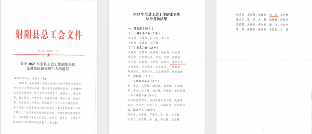 近日,射陽縣總工會公示了2023年射陽縣“職工幸福企業(yè)”名單、縣工會工作爭先創(chuàng)優(yōu)綜合考核結(jié)果,射陽港開發(fā)集團榜上有名,再獲新榮譽。