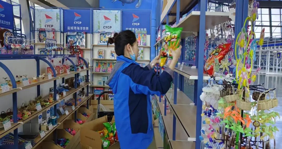 景區各小組成員在部門負責人的帶領下積極備戰活動前的各項準備工作。此次活動,結合大豐港動物園客流量資源優勢,借助海洋劇場海豚錯峰表演時間,將游客進行引流。同時,為滿足游客多樣化需求,促進景區二次消費,海洋劇場商品柜臺準備了數量充足、類別豐富的商品品類,工作人員正在提前往商品陳展架上擺滿各式各樣的商品。
