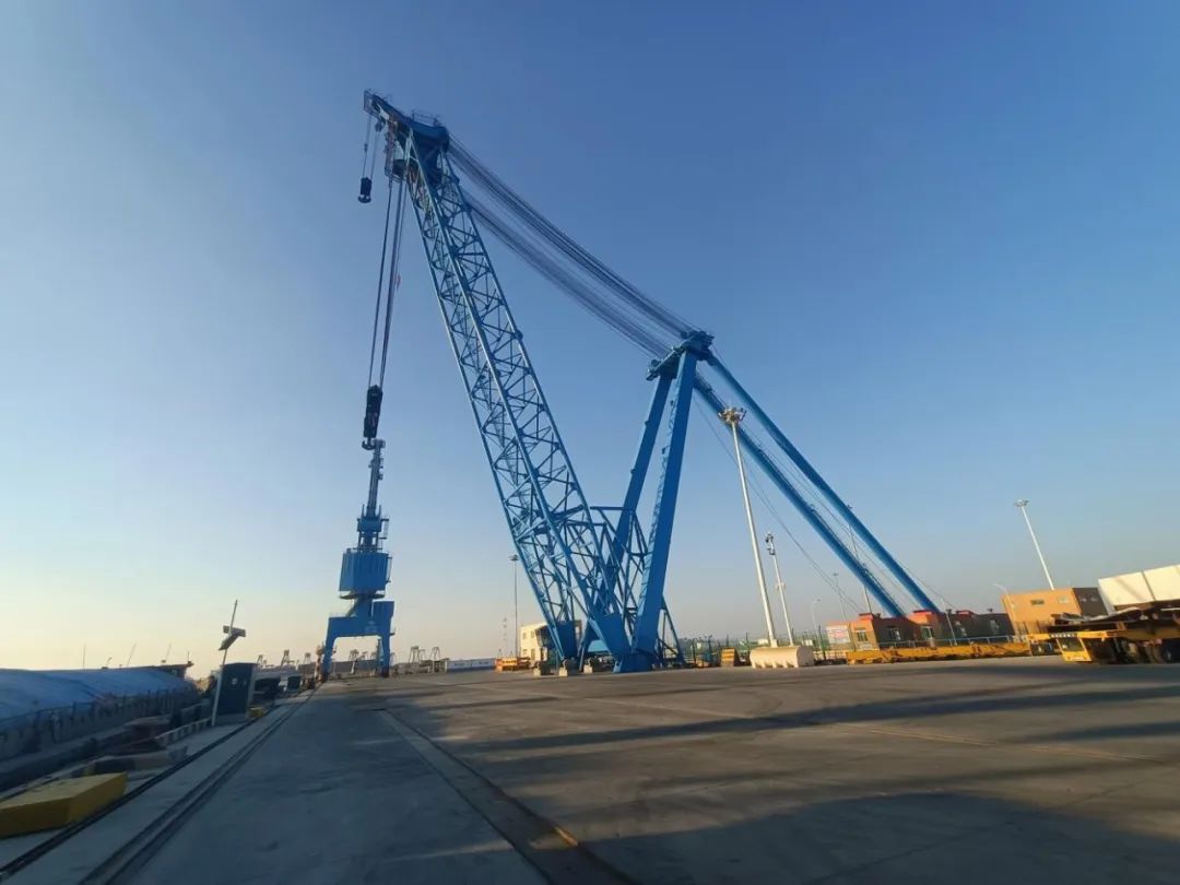 桅桿式起重機(俗稱桅桿吊),桅桿吊是一種能吊裝其他起重機械難以吊裝的特殊構(gòu)筑物和重大結(jié)構(gòu)的起重機,鹽城港桅桿吊主要從事風電相關(guān)的塔筒及風葉等大型配件其他相關(guān)大型設備的吊裝,目前響水、大豐、射陽均有相應的起重設備,其中響水重件碼頭桅桿吊起重負荷可高達1250噸,為華東地區(qū)最大負荷的港口起重設備。
