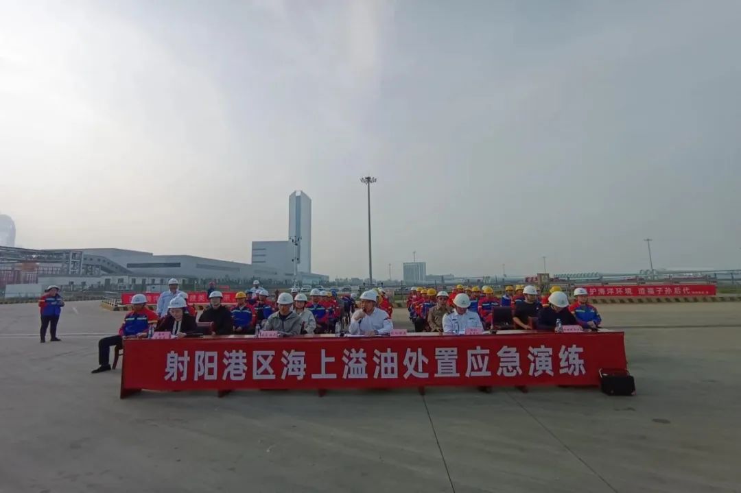 以上情景并非真實發生的事故,而是射陽港區聯動射陽海事處、中鐵廣州局項目部、國能新能源模擬海上突發溢油應急處置演練中的場景。