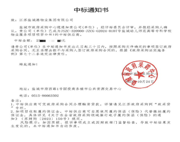 金秋十月,碩果累累,鹽城港物業(yè)公司成功中標(biāo)鹽城幼兒師范高等專科學(xué)校物業(yè)服務(wù)項目,在鹽城大市區(qū)外拓市場中實現(xiàn)新突破!項目新增“宿管”“安全員”等服務(wù)內(nèi)容,總服務(wù)面積12余萬平方米,中標(biāo)金額200余萬元,為在管項目領(lǐng)域再添新業(yè)績!