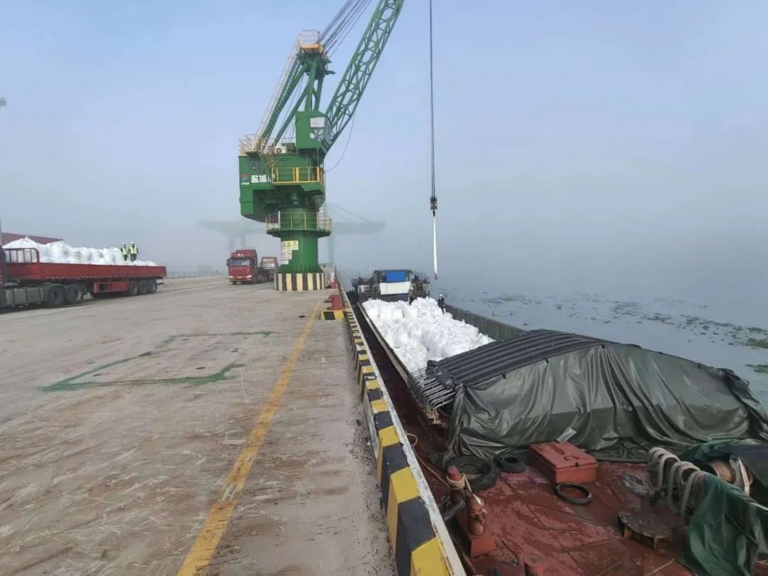 11月3日晨光初照,通榆河畔不遠(yuǎn)處,滿(mǎn)載著953噸水泥噸袋的“湘懷化貨7728”貨輪緩緩駛?cè)肓送ず鄣纳a(chǎn)作業(yè)區(qū)域,隨著薄霧漸漸散去,在確保安全生產(chǎn)的前提下,港區(qū)員工們迅速投入裝卸工作中,高效完成作業(yè)任務(wù)。