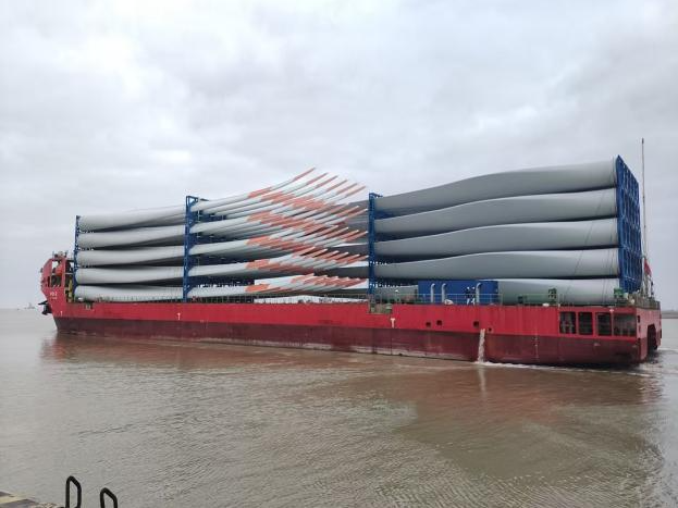 貨源結構優化升級,風電裝備領跑增長。射陽港區一方面緊抓新能源產業發展機遇,聚焦品牌建設,主動對接國內外風電產業鏈頭部企業,成功簽訂遠景能源印度EN-156項目增補訂單20套,58公里海纜等大型風電設備出口業務,一季度外貿風電裝備出口業務量同比增長100%。另一方面深化“多貨種協同”策略,組織市場開拓小組分別走訪縣內大型礦建材客戶調研與港口合作意向,達成“量價結合”場地租賃合作意向客戶6家,客戶黏性與業務輻射力顯著增強,形成“風電引領、多元支撐”的貨源新格局。