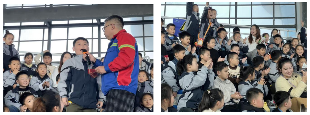 海洋劇場不僅是歡樂的舞臺,更是移動的海洋課堂。在海豚表演正式開始前,特別設置了生動有趣的科普問答環節。講解員用充滿童趣的語言,揭開海洋世界的奧秘,孩子們踴躍舉手,爭相分享剛剛學到的知識,現場小手如林,氣氛熱烈。