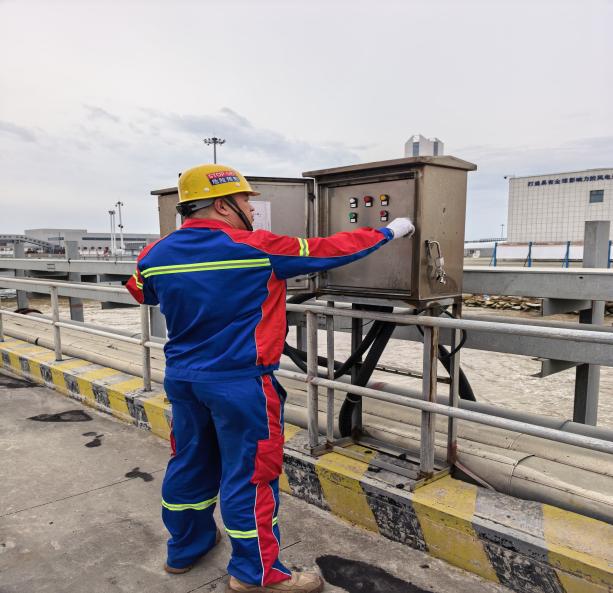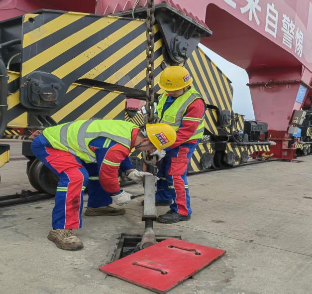 風(fēng)險防控“再夯實”,守牢安全底線。“夜間陣風(fēng)可達(dá)9級,請立即加固門機(jī)防風(fēng)拉索,定位、錨固、鎖緊、檢查,一步不落。”碼頭上,生產(chǎn)班組長正通過對講機(jī)反復(fù)叮囑,確保防風(fēng)措施落實落細(xì)。3#變電所內(nèi),水電班組正在開展惡劣天氣專項線路巡檢工作,對高低壓線路、電纜溝、變壓器、開關(guān)柜等進(jìn)行拉網(wǎng)式排查,重點檢查線路破損、接頭發(fā)熱、絕緣老化等隱患,并全面測試應(yīng)急照明,全力筑牢碼頭設(shè)備安全運行的堅固防線。