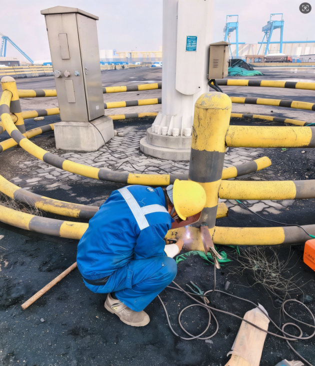 在烈焰與鐵水交織的作業現場,他們是當之無愧的“鋼鐵工匠”。當門機鋼構出現細微裂紋,當鋼絲繩防跳槽裝置亟待優化升級,手握焊槍的他們,以火為針、以鐵為線,在千度高溫中完成一次次精準的“設備修復手術”。每一道焊縫都承載著責任,每一次技術攻關都守護著安全,焊花飛濺間,他們筑牢了港口生產的“鋼鐵骨架”,讓萬噸巨輪的裝卸作業萬無一失,為港口的高效運轉筑牢硬件根基。