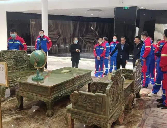 實地觀摩射陽港名品石材交易中心。該中心位于江蘇射陽港經濟開發(fā)區(qū),面積約10000平方米,建有中庭、石材科普館、石材智慧館等,集名品展示、產品展銷、知識普及于一體。觀摩結束后大家紛紛表示,在今后的工作中將積極運用研學企業(yè)的“進、加、銷、宣”的營銷模式和管理模式,拓寬業(yè)務發(fā)展渠道,在濱海港區(qū)的生產經營工作中,勇于擔當,積極作為。